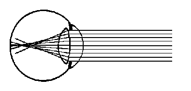 (1) An eye in which the refracting surfaces of the cornea and crystalline lens do not have a perfectly spherical form is called astigmatic. When an eye is astigmatic, parallel rays entering the eye cannot produce an exact focused image on the retina. The refraction of the light rays at various points in the eyeball occur at different angles. As a