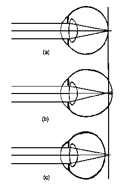 (b) Nearsighted (c) Farsighted.