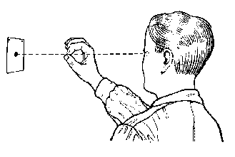 excessive frequency, from one point of clear vision to another. For example, a shift of focus from the rear notch and the front sight to the target, and back again. The protracted muscular effort expended under such conditions leads to the rapid and considerable fatiguing of the oculomotor muscles. For the same reason, the shooter must not aim for long sustained periods. He must make sure that in the intervals between sequences of aiming, he does not concentrate his glance on some object, but looks momentarily into the distance "with an absent-minded stare" in order to rest his eye muscles.
