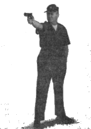 Let us assume that the shooter takes a stance for firing that will preserve the natural, erect posture of the body. He will strive to keep it erect with small compensating deviations of the muscle system. Thus, the extended arm holding a pistol places great tension on the muscles in the back and shoulders. In addition, if the shooter's figure is examined from the side, it will become obvious that when the shooter's body is kept stiffly erect, the body will be slightly unstable. The keeping of the body rigid will result in early fatigue and cause undesirable movement.