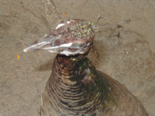 We eat dinner at a downtown restaurant that has pea-fowl in its courtyard.