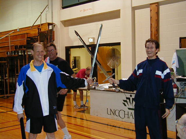 May 6, 2001. Joe Hoffman and me, with our 2nd and 1st place edged trophies respectively.